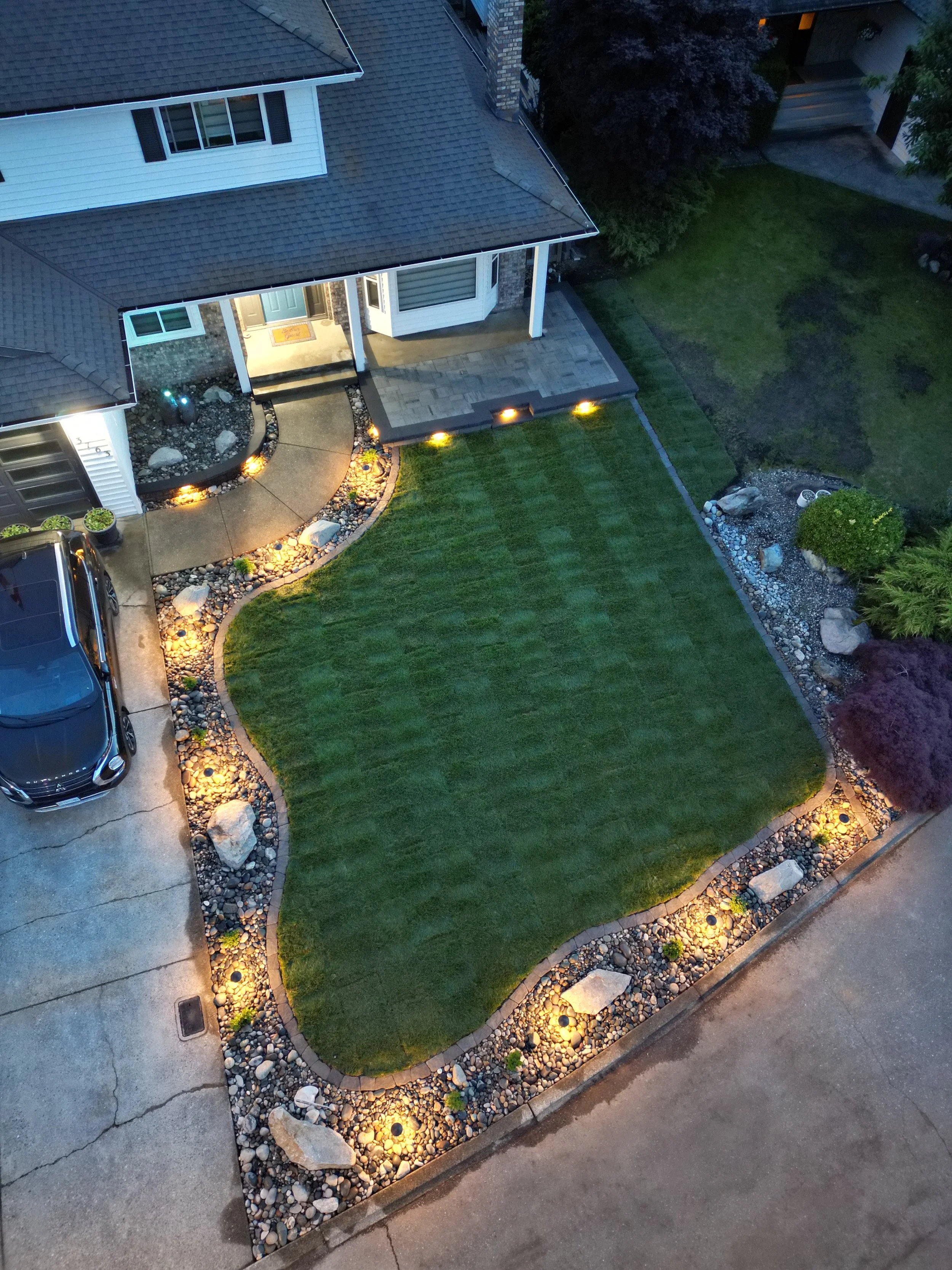 We design and install custom landscape lighting systems that bring your outdoor spaces to life—long after the sun goes down. More than just aesthetics, our lighting solutions are built to enhance safety, showcase key features, and create a welcoming ambiance with lasting impact.